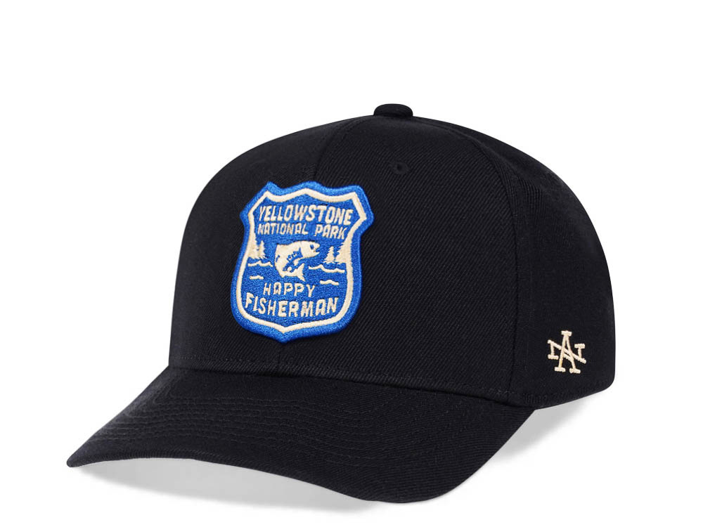 American Needle Yellowstone National Park Happy Fisherman Black Snapback Cap