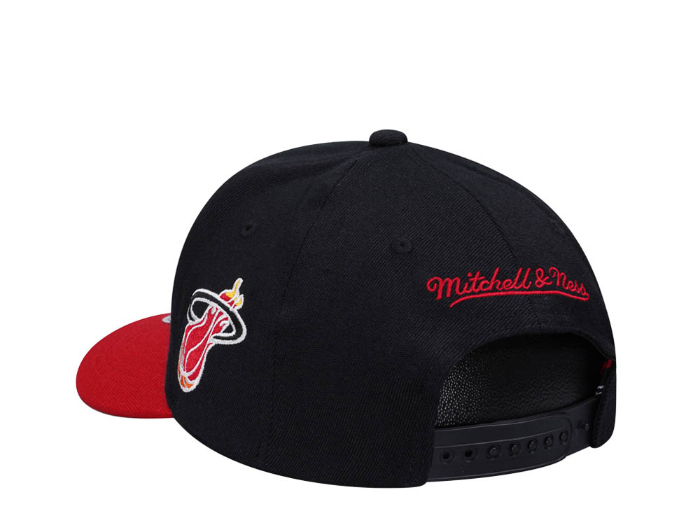 Mitchell & Ness Miami Heat Script 2.0 Black Two Tone Red Line Flex Snapback Cap