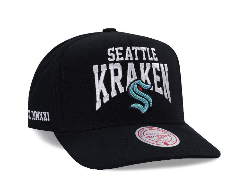 Mitchell & Ness Seattle Kraken Black Pro Pinch Fit Snapback Cap